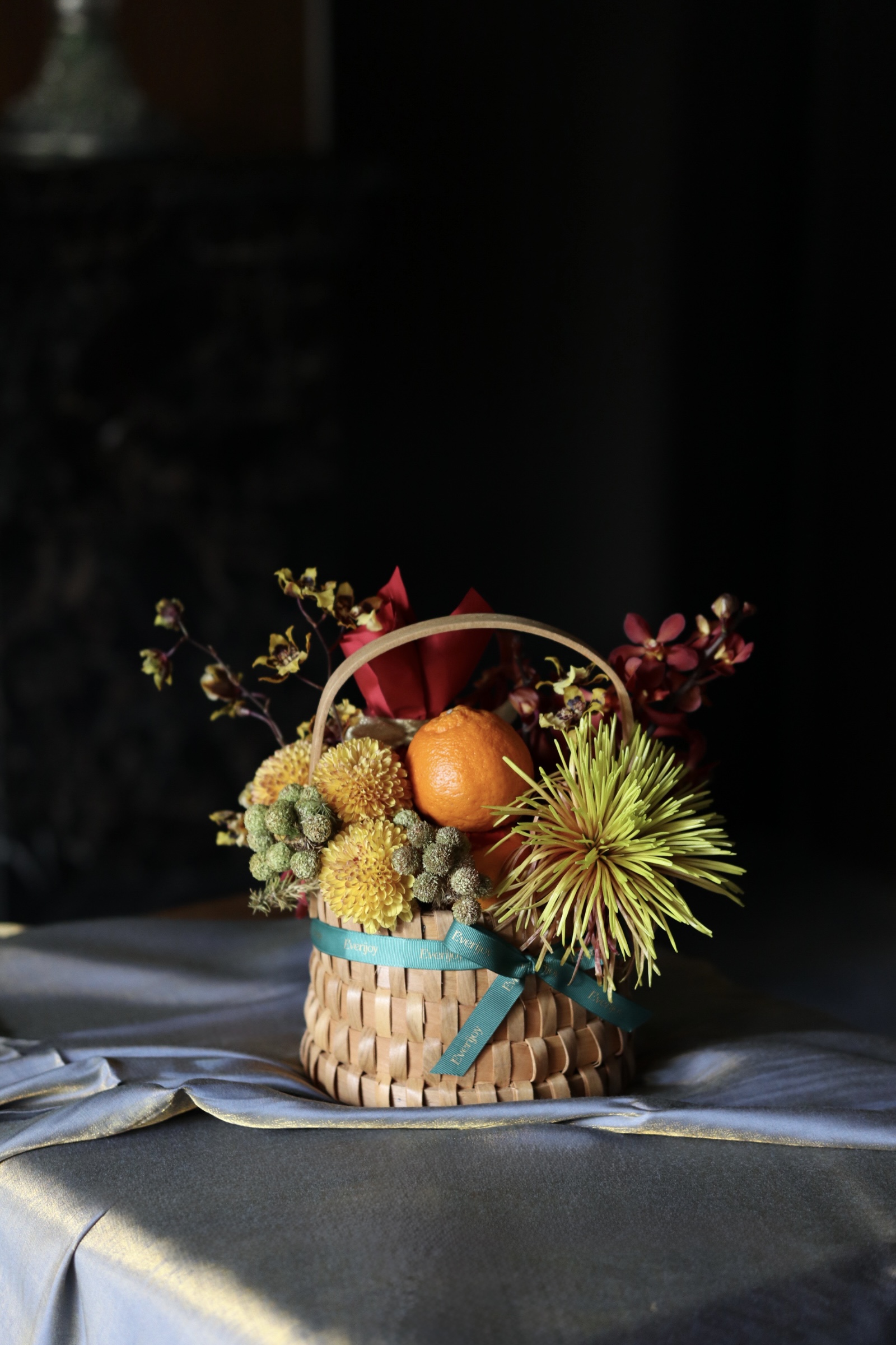 在年節往來中, 有些祝福,需要被清楚地看見,也被穩妥地傳遞。 橘子,象徵吉祥、圓滿與好運; 花朵,代表祝賀、欣欣向榮與新的開始。 我們將兩者結合,以提籃的形式呈現, 讓祝福不只是被放置,而是能被親手提起、交付、完成。